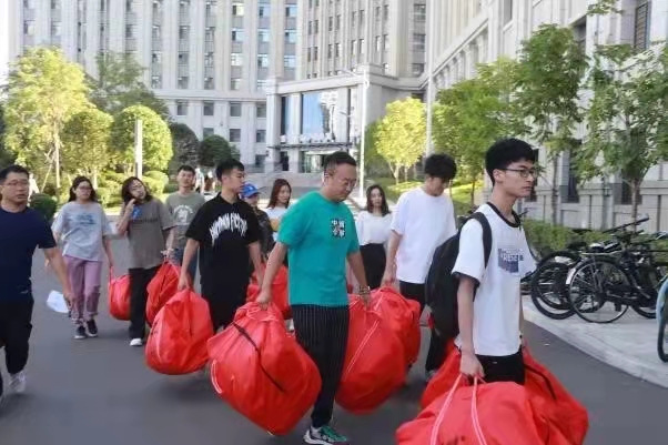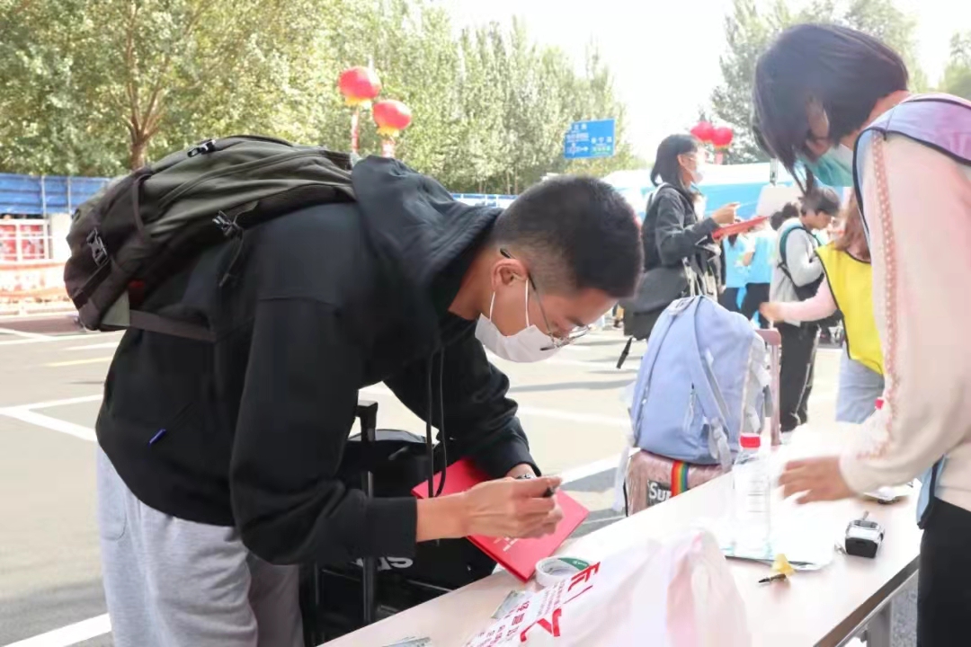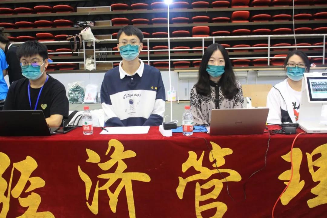 在学校大门前,体育馆前,寝室楼前,随处可见一方红色帐篷,那是经管志愿者们的大本营,也是新生们与管院初次相遇的地方。从新生进校到检测核酸,从签到登记到入住寝室,经管志愿者们一路相伴。他们是温柔的陪伴者,用满心欢喜迎接;也是耐心的指导者,以丰富经验给予新生帮助。